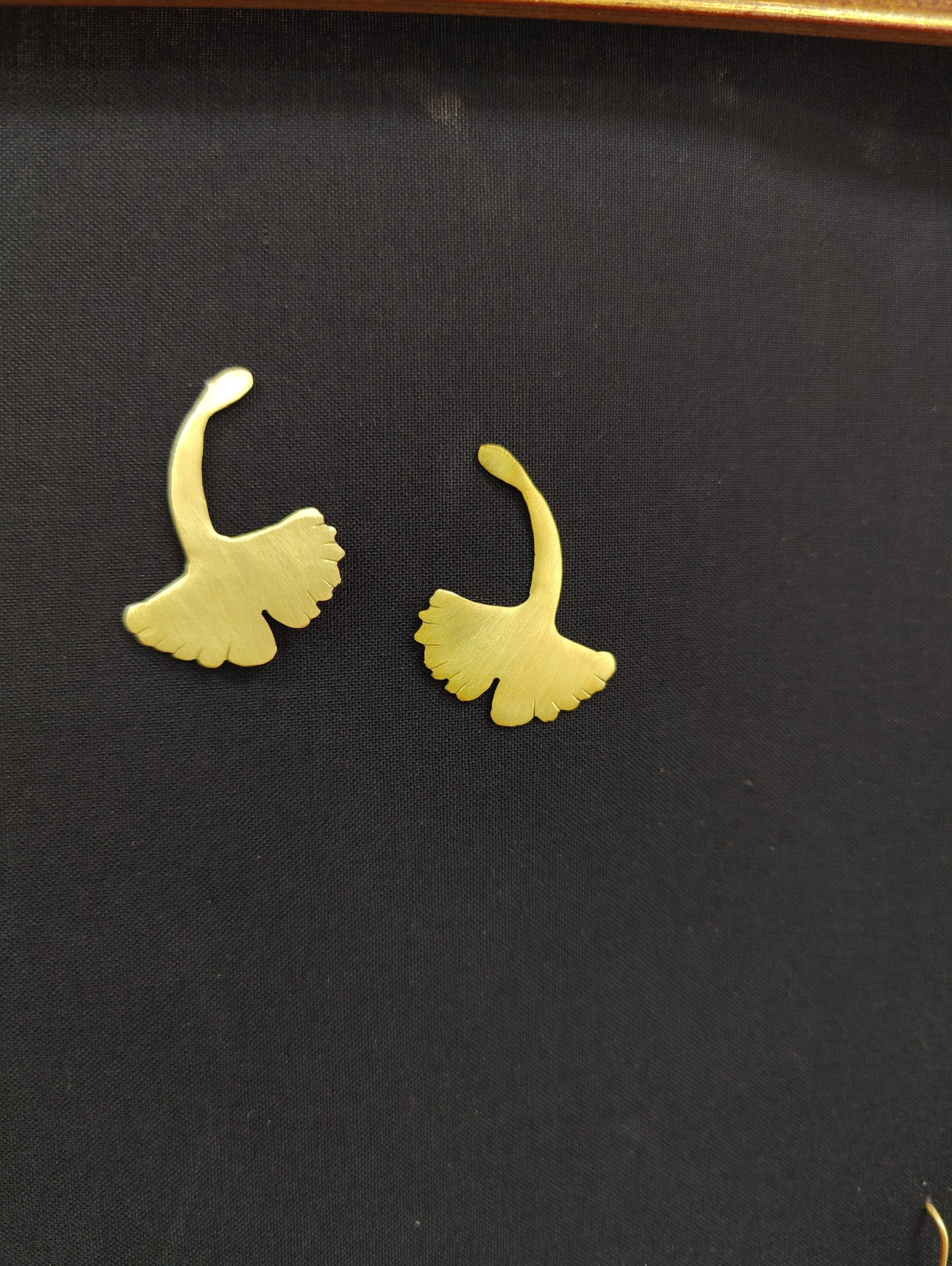 Pendientes inspirados en la hoja del árbol ginkgo, reinterpretada en un diseño fluido y elegante que simboliza equilibrio, calma y armonía natural.