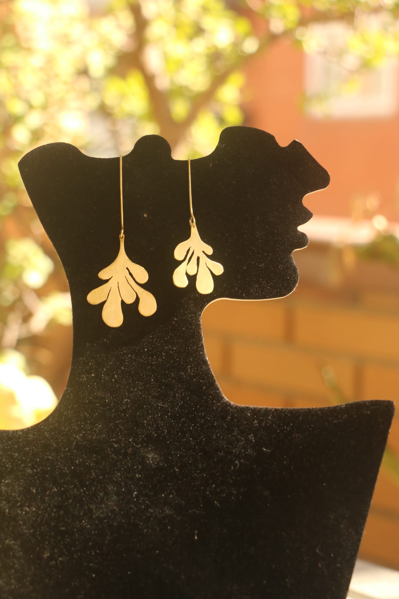 Pendientes inspirados en formas naturales que evocan el fluir del agua y las ramas del bosque.